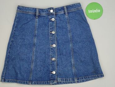 Jeansowa spódnica H&M - Klasyczny denim w kolorze średniego niebieskiego - Skład: 100% bawełna (metka na zdjęciu) - Fason: mini, prosty krój - Zapięcie z przodu na suwak i metalowy guzik - Szlufki...