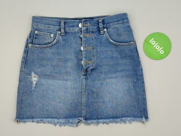 Jeansowa spódnica mini &Denim - Kolor: jasny denim (przetarcia w stylu vintage) - Krój: prosta mini, surowo wykończony dół z postrzępioną krawędzią - Zapięcie: guzik i zamek z przodu - Kieszenie: ...