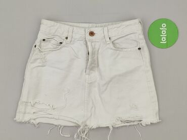 Biała spódnica mini o kroju denimowym - Kolor: kremowa/biała - Fason: prosty, mini, z delikatnym rozcięciem po bokach u dołu - Zapięcie: klasyczny guzik i zamek z przodu - Pas: ze szlufkami na pas...