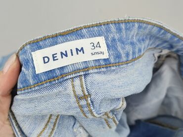 Jeansowa spódnica damska Sinsay - Model: DENIM Sinsay - Rozmiar z metki: 34 - Fason: mini, wysoki stan - Kolor: jasny niebieski (sprany denim) - Zapięcie: guzik i suwak z przodu - Kieszenie: 5 (tr...