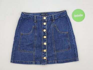 Jeansowa spódnica Stradivarius - Model mini z wysokim stanem - Rozmiar: EU 36 / USA 04 / MEX 26 (metka na zdjęciu) - Kolor: klasyczny granat denim - Zapięcie: rząd ozdobnych, złotych guzików z prz...