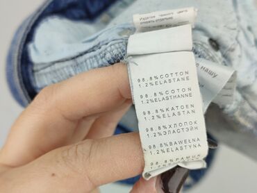 Jeansowa mini spódniczka damska - Materiał: 98% bawełna, 2% elastan (informacja z metki) – miękka, lekko elastyczna denimowa tkanina. - Kolor: klasyczny niebieski jeans z delikatnymi przetarciami....