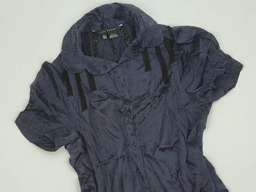 Bluzka damska ZARA - Rozmiar: XS (EUR XS / USA XS / MEX 24) – metka widoczna na zdjęciu - Kolor: błękitny/niebieski „dusty blue” - Fason: zapinana na guziki, z kołnierzykiem - Rękaw: krótki, lekko...