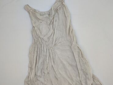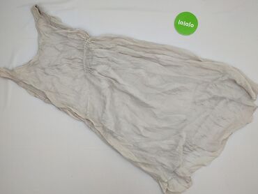 Sukienka damska w kolorze kremowym z elastycznym, szerokim paskiem w talii w odcieniu brązu. Góra i dół z lekkiego, marszczonego materiału o drobnej, prążkowanej fakturze, tworzącego romantyczne dr...