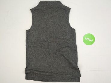 Szary, dzianinowy bezrękawnik/kamizelka damska - Rozmiar: S (metka widoczna na zdjęciu) - Kolor: jasny szary (melanż) - Fason: bez rękawów, zapinany z przodu na dwa duże guziki - Wzór: efektowne w...