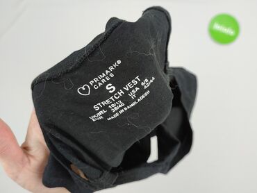 Czarna damska kamizelka garniturowa - Krój: taliowana, z głębokim klapowanym dekoltem w szpic - Zapięcie: pojedynczy guzik z przodu - Tył: wydłużony „w szpic” z regulowanym paskiem i klamerką do d...Czarna damska koszulka na ramiączkach Primark Cares – Stretch Vest