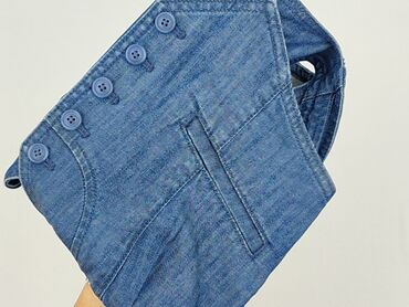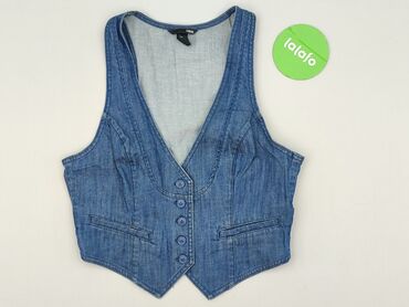 Jeansowy top/kamizelka bez rękawów - Materiał: denim (niebieski jeans) - Krój: dopasowany, głęboki dekolt w kształcie litery V - Zapięcie: rząd metalowych guzików z przodu - Kieszenie: dwie kiesze...
