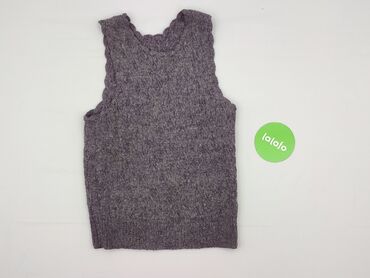 Szary, dzianinowy bezrękawnik/kamizelka damska - Rozmiar: S (metka widoczna na zdjęciu) - Kolor: jasny szary (melanż) - Fason: bez rękawów, zapinany z przodu na dwa duże guziki - Wzór: efektowne w...