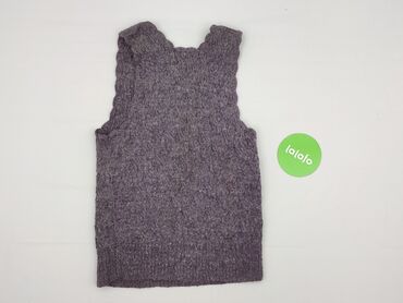 Fioletowa kamizelka damska, dzianinowa - Krój: bez zapięcia, miękko układające się, zaokrąglone poły z przodu - Materiał: dzianina z subtelną, melanżową nitką (delikatne drobinki wplecionych włóki...Stan: