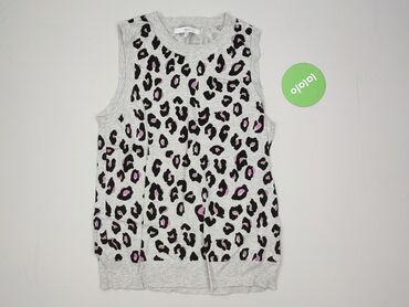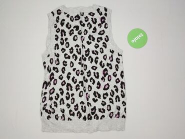 Szary bezrękawnik/kamizelka damska, zapinana na guziki u dołu. - Rozmiar: 40 (na metce) - Kolor: jasny szary melanż - Krój: bez rękawów, otwarty przód, dopasowane prążkowanie; dół z szerokim ściąg...