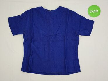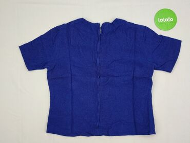 Bluzka damska w kolorze kobaltowym - Krój prosty, lekko luźny - Dekolt okrągły - Krótkie rękawy z delikatną zakładką - Na przodzie pionowa listwa/kontra składająca - Dół z podwójną, subtelnie wydł...Stan: