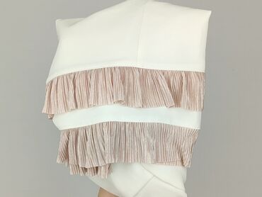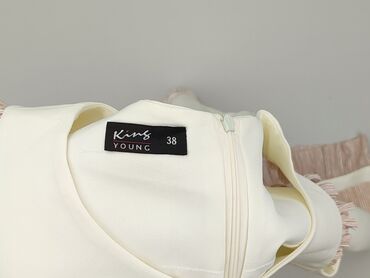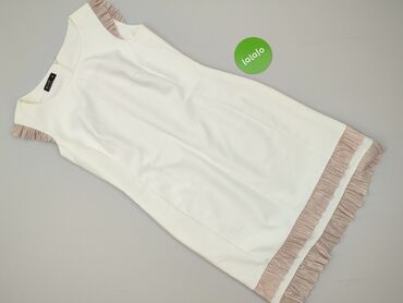 Sukienka bez rękawów Kinv, rozmiar 38. - Kolor: jasny krem/wanilia - Fason: prosty, lekko rozszerzany ku dołowi, długość midi - Dekolt z ozdobną kaskadą falban biegnącą asymetrycznie z przodu - Za...