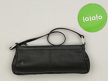 Czarna damska torebka na ramię - Klasyczny, minimalistyczny fason z prostokątną metalową wstawką z przodu - Dwa cienkie paski do noszenia na ramieniu - Zapięcie: zewnętrzna klapka na nap, wewnętrz...