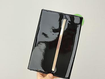 Kopertówka damska wieczorowa, czarna - Elegancki model w formie prostokątnej kopertówki - Front zdobiony zakładkami z tkaniny i aplikacją z błyszczących kryształków - Materiał: satynowa tkanina o ...