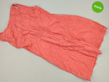 Sukienka letnia damska – rozmiar XL - Materiał: 100% len (metka widoczna na zdjęciu) - Kolor: koralowy/róż łososiowy - Wzór: granatowe kwiaty i motyle na całej powierzchni - Krój: bez rękawów, del...