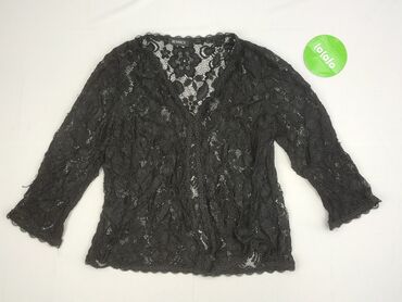 Czarna koronkowa bluzka SELECT - Damska, elegancka narzutka/bluzka z koronki o kwiatowym wzorze - Kolor: czarny - Rękawy: 3/4 z delikatnie rozszerzaną falbaną - Dekolt: w kształcie litery V, bez z...Stan: