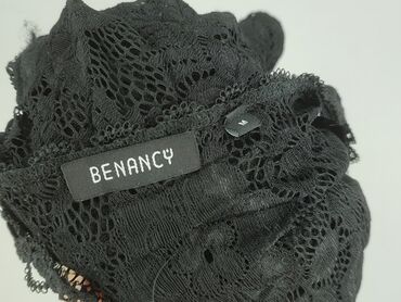 Czarna koronkowa bluzka damska H&M - Rozmiar z metki: M (EUR/US/CA/CN/MX M) - Fason: prosta, z krótkim rękawem; okrągły dekolt, z tyłu niewielkie rozcięcie zapinane na guzik - Materiał: - wierzc...