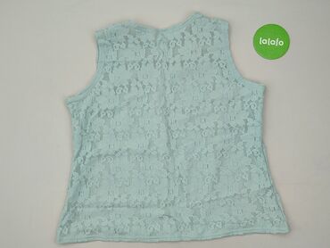 Damska bluzka bez rękawów z dekoltem w serek. - Wzór: wielobarwny, mandale i zygzaki w odcieniach zieleni, turkusu, pomarańczu, żółci i beżu - Dekolt zdobiony ażurową koronkową wstawką w kolorz...
