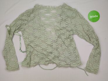 Ażurowa bluzka/ narzutka damska - Kolor: jasnozielony (pastelowa limonka) - Materiał: elastyczna koronka z kwiatowym wzorem; półtransparentna - Krój: lekka narzutka z zakładanym/dekoltem w serek, ...Stan: