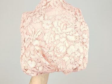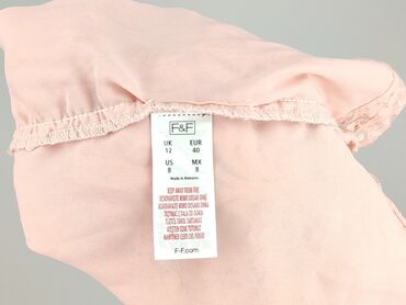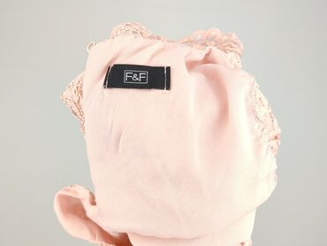 Bluzka damska F&F - Rozmiar: EU 42 (UK 14, US 10) - Kolor: pudrowy róż - Krój: luźny, zwiewny - Dekolt: w kształcie litery V z ażurową koronką przy krawędzi - Rękawy: krótkie z wycięciem „cold sho...