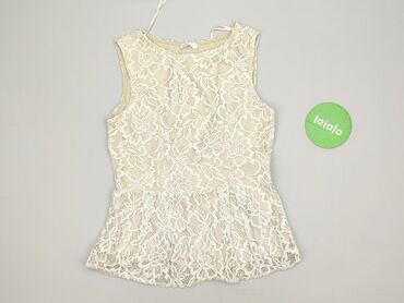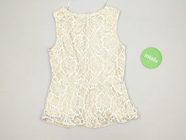 Kremowy top koronkowy na ramiączkach - Fason: bez rękawów, klasyczny top z zaokrąglonym dekoltem z przodu i głębszym dekoltem w kształcie litery V na plecach. - Materiał: 100% poliester (informacj...Stan: