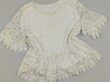 Bluzka damska w kolorze kości słoniowej/ecru, Made in Italy. - Materiał: 95% poliester, 5% elastan (metka na zdjęciu) - Krój luźny, delikatnie wydłużony tył, lekko transparentna tkanina z drobnymi ...
