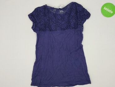 Granatowa bluzka damska Tu, rozmiar 14 (UK) - Krój luźny, z krótkim rękawkiem/kapką - Okrągły dekolt z wstawką z koronki z tyłu - Dłuższy, zaokrąglony dół - Przód z nadrukiem i połyskującymi aplik...