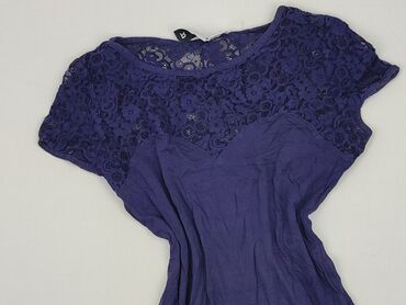 Bluzka damska Reserved - Kolor: granatowy z dekoracyjnym, kobaltowym nadrukiem koronkowym w dolnej części przodu - Krój: prosty, luźniejszy, z okrągłym dekoltem - Rękaw: 3/4 - Materiał: elastyczna...