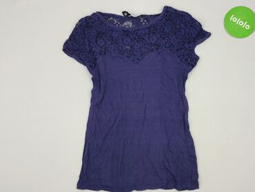 Bluzka damska Reserved, rozmiar L - Model: koronkowa bluzka z krótkim rękawem - Kolor: granatowy z pudrowo‑różowymi, koronkowymi pasami - Fason: lekko taliowana, okrągły dekolt - Zapięcie: metalow...