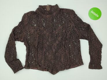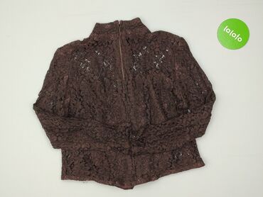Koronkowa bluzka damska z krótkim rękawem - Kolor: beżowy - Tkanina: miękka, elastyczna koronka z kwiatowym wzorem; półprzezroczysta struktura - Krój: lekko dopasowany, długość do bioder - Zapięci...