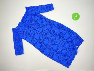 Koronkowa sukienka mini w kolorze intensywnego kobaltu. - Krój dopasowany, długość przed kolano - Dekolt szeroki, zaokrąglony - Rękaw do łokcia - Wierzch: elastyczna koronka z kwiatowym wzorem - P...