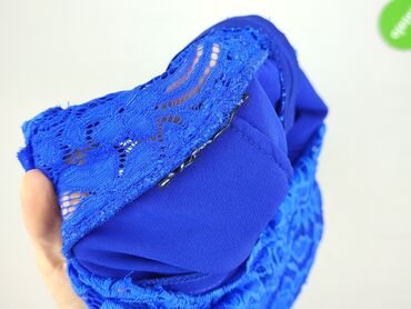 Sukienka damska w kolorze kobaltowym. - Krój: lekko rozkloszowana, długość mini/przed kolano. - Dekolt: okrągły. - Rękawy: krótkie, z koronkowymi wstawkami w tym samym odcieniu. - Tył: rozcięcie za...