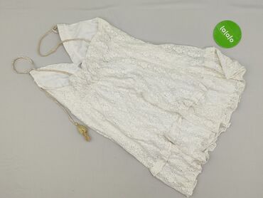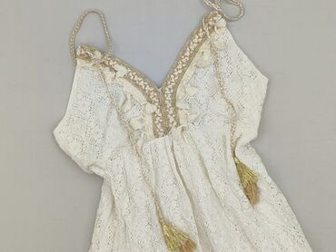 Biała sukienka boho na ramiączkach „Made in Italy” - Zwiewny, plisowany krój z miękkiej, lekkiej tkaniny. - Dekolt i ramiona zdobione ażurową koronką z kwiatowym motywem oraz perełkami. - Asymetry...Stan: