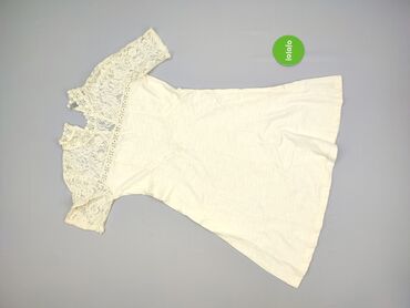 Subtelna, dziewczęca sukienka w odcieniu ecru z koronkową górą i krótkimi rękawami. Dzięki podkreślającym sylwetkę cięciom i delikatnej stójce prezentuje się bardzo elegancko. Rozmiar EU 36.