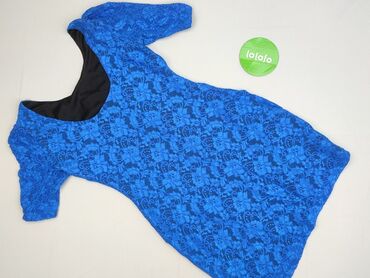 Sukienka damska, kobaltowa, z ażurowym wzorem - Krój: dopasowana góra z krótkim rękawem, lekko rozkloszowany dół - Dekolt: okrągły - Zapięcie: kryty zamek z tyłu - Materiał: elastyczna dzianina z ...