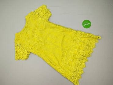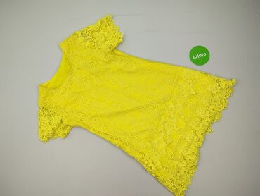 Sukienka żółta z koronkowymi rękawami - Krój: prosta, lekko rozszerzana ku dołowi - Długość: mini/przed kolano (na wzrost zależny od noszącej) - Rękawy: długie, wykonane z ażurowej koronki w kwiat...Stan: