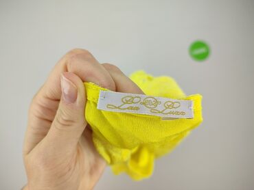 Sukienka bez rękawów w kolorze intensywnej żółci. - Fason: prosta, lekko trapezowa, długość do kolan (ok. midi/mini zależnie od wzrostu), dekolt typu halter z zabudowaną stójką. - Materiał: ażurow...