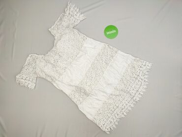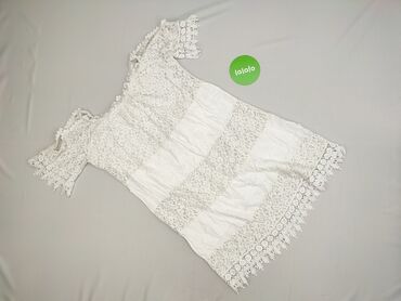 Biała sukienka boho z koronkową górą - Fason: mini, bez rękawów - Góra: szydełkowa/koronkowa, ażurowa, z motywami kwiatowymi; wiązanie na sznureczek przy dekolcie - Dół: lekki, marszczony materiał...