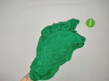 Sukienka damska, bez rękawów, w kolorze butelkowej zieleni. Model z kopertowym dekoltem V, wykończony ażurową koronką przy dekolcie i w pasie. Tkanina haftowana (ang. broderie/eyelet) z geometryczn...Sukienka damska „style” – zielona, koronkowa