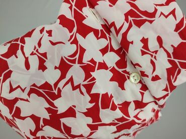 Bluzka damska z długim rękawem, ozdobiona wzorem w kwiaty w odcieniach czerwieni, błękitu i szarości na białym tle. Bluzka posiada klasyczny kołnierzyk i guziki na całej długości. Wykonana jest w 1...Stan: