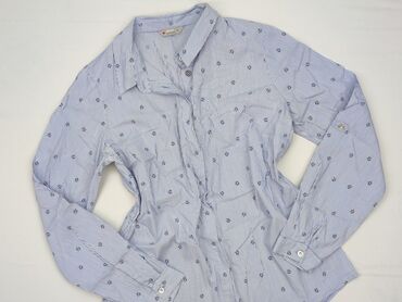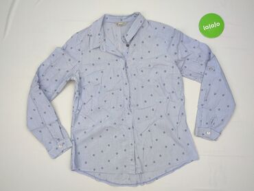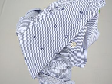 Koszula damska w paski - Krój: klasyczna koszula zapinana na guziki z kołnierzykiem, długie rękawy z mankietami na guziki - Wzór: drobne pionowe paski w kolorze błękitno-białym - Rozmiar z metki: ...
