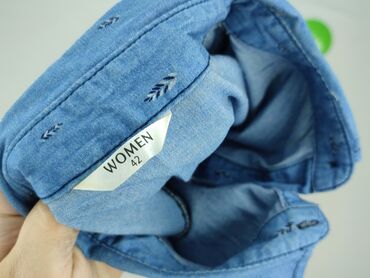 Damska koszula bawełniana WOMEN, rozmiar 40. - Kolor: jasny denim/niebieski - Materiał: 100% bawełna (miękka, przewiewna tkanina) - Wzór: subtelny, drobny nadruk/haft w kształcie gałązek - Krój: s...