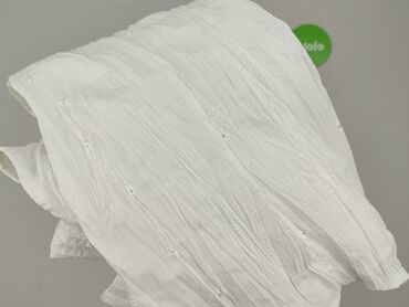 Biała koszula damska z krótkim rękawem - Materiał: lekka, przewiewna tkanina przypominająca len/bawełnę - Krój: luźny, lekko pudełkowy; obniżona linia ramion; zaokrąglony dół - Zapięcie: pełna lis...
