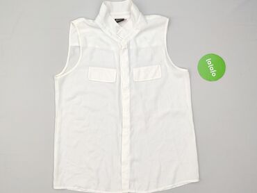 Bluzka bez rękawów ONLY – biała - Krój: koszulowy, zapinana z przodu na rząd małych guzików - Kołnierzyk klasyczny - Góra z półprzezroczystego materiału (karczek z siateczkową wstawką), dół pełny ...Stan: