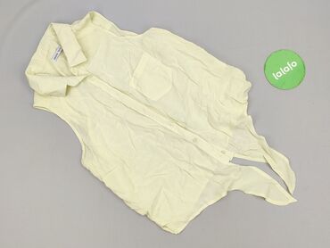 Koszula damska z krótkim rękawem - Kolor: pastelowy żółty - Rozmiar z metki: M - Krój: luźny, prosta linia, klasyczny kołnierzyk - Zapięcie: rząd drewnopodobnych guzików z przodu - Kieszeń: jedna ...