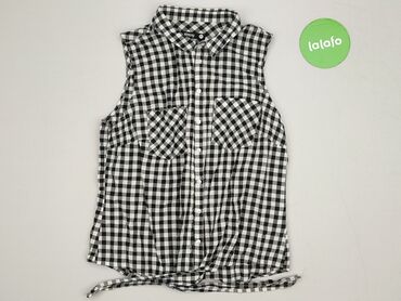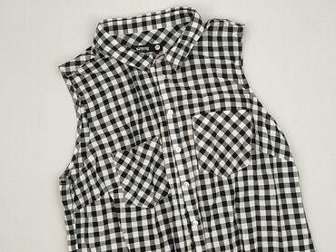 Bluzka bez rękawów Sinsay dla kobiet - Rozmiar: M (z metki) - Krój: koszulowy, zapinany na guziki z przodu - Kołnierzyk klasyczny - Wzór: czarno‑białe pionowe pasy (z tyłu karczek z pasami poziomy...