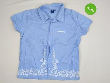 Używana koszula damska marki Lamia w rozmiarze 50. Koszula w idealnym stanie, wykonana z mieszanki poliestru i wiskozy. Biała koszula z krótkim rękawem, zapinana na guziki, z wzorem w pomarańczowe ...