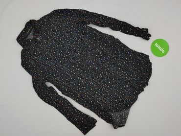 Body damskie Reserved, rozmiar L. - Fason: asymetryczne ramiączka z falbaną na dekolcie (hiszpański akcent na jedno ramię), dół zapinany na zatrzaski. - Kolor: czarny z subtelnym metalicznym połys...