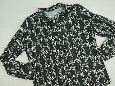 Koszula damska z długim rękawem, XXL - Fason: klasyczna koszula zapinana na guziki, kołnierzyk, mankiety na guziki - Kolor/wzór: czarne tło, biały grafik z literami/znakami na całej powierzchni (a...