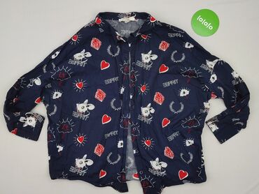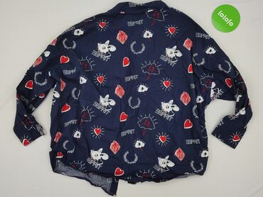 Długi rękawKoszula damska Esprit o luźnym kroju, w kolorze granatowym. Charakteryzuje się wzorzystym nadrukiem, w tym sercami, diamentami, symbolami marki Esprit i innymi motywami graficznymi. Koszula posiada klasyczny kołnierzyk i zapięcie na guziki na całej długości. Długie rękawy zakończone są mankietami zapinanymi na guziki. Idealna do noszenia na co dzień, zarówno rozpięta, jak i zapięta, pasująca do różnych stylizacji. Stan bardzo dobry.